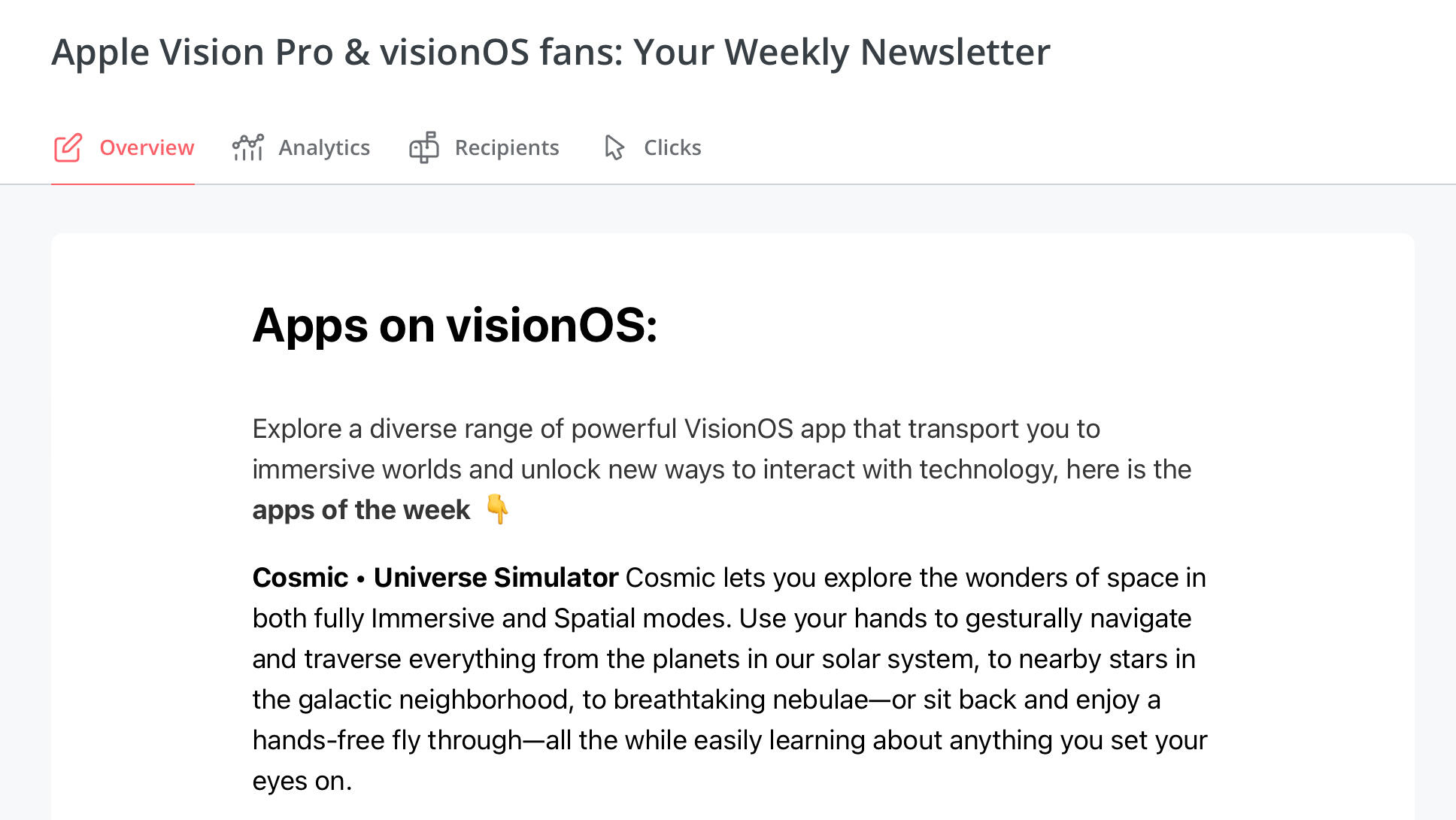 1,000+ reads visionOS weekly newsletter